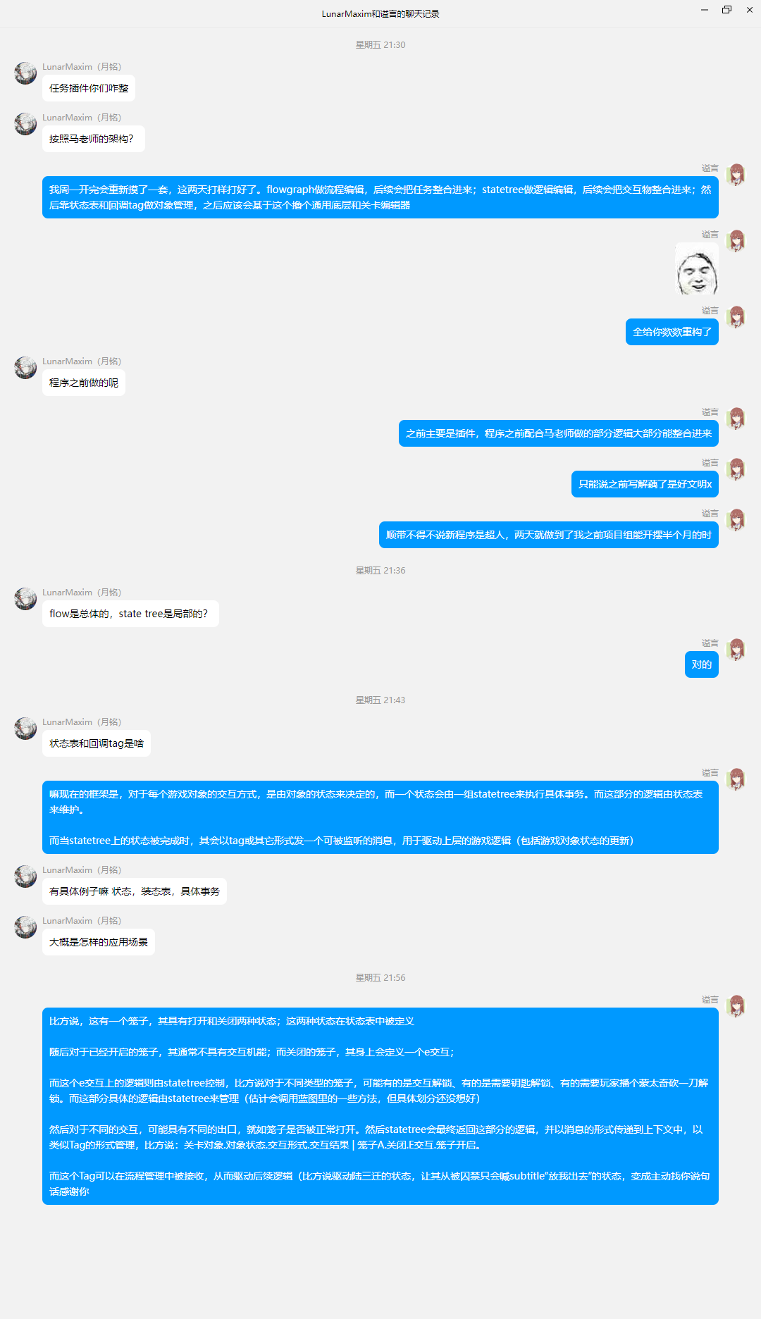正如和老板聊天的时候接下的课题,来到这儿让我有机会真正把我想设计的游戏底层实现出来,结合我对关卡编辑、任务编辑、模块化的全部理解,在一片全新的热土而非屎山上耕耘。